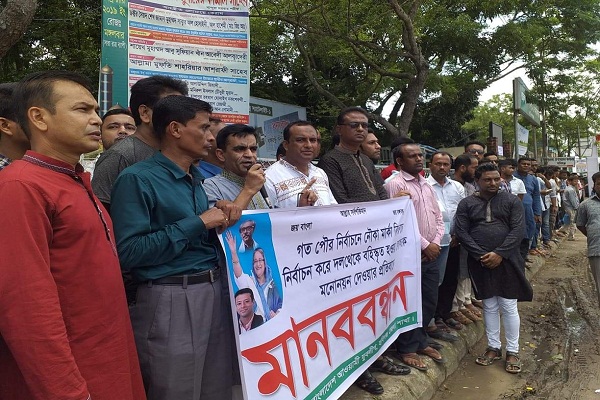 রোববার (৯ জুন) দুপুরে জেলা যুবলীগের ব্যানারে জেলা প্রশাসকের কার্যালয়ের সামনে এ মানববন্ধন কর্মসূচির আয়োজন করা হয়।