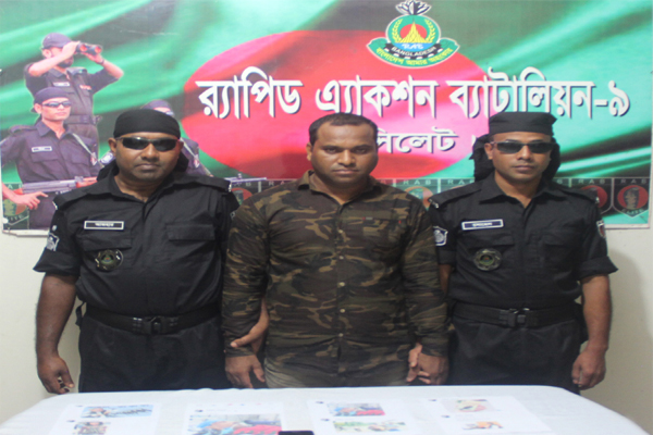 সোমবার (১০ জুন) রাত সাড়ে ১০টার দিকে শাহপরাণ থানাধীন খাদিমনগর এলাকায় অভিযান পরিচালনা করে তাকে আটক করা হয়।