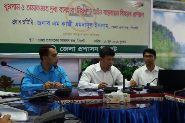 সিলেট জেলা প্রশাসনের উদ্যোগে ধূমপান ও তামাকজাত দ্রব্য ব্যবহার (নিয়ন্ত্রণ) আইন বাস্তবায়ন বিষয়ক প্রশিক্ষণ অনুষ্ঠিত হয়েছে।