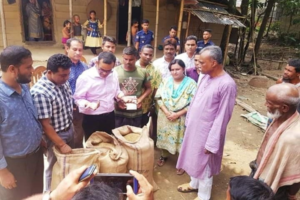 বৃহস্পতিবার (১৩ জুন) ছাতকের কালারুকা ইউনিয়নের রাজাপুর গ্রামে কৃষকদের বাড়ি বাড়ি গিয়ে ধান সংগ্রহ করেন তিনি।