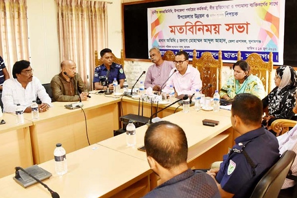 সুনামগঞ্জের জেলা প্রশাসক মোহাম্মদ আব্দুল আহাদ বলেছেন, জন দুর্ভোগ লাঘবে প্রতি বুধবার উপজেলা পরিষদ চত্বরে গণ শুনানি অনুষ্ঠিত হবে। এ লক্ষে পরিষদ চত্বরে নির্মাণ করা হবে একটি সেবাশেড। উপজেলার বিভিন্ন স্থানে সরকারী ভূমিতে অবৈধ স্থাপনা উচ্ছেদ, নদীতে ভাসমান অবৈধ ওয়াশিং মেশিন ও ড্রেজার মেশিনে বালু উত্তোলন বন্ধে দ্রুত কার্যকর ব্যবস্থা নেয়া হবে। হাদা-পাণ্ডব এলাকায় মুক্তিযোদ্ধাদের অরক্ষিত গণ কবর সংরক্ষণে নেয়া হবে প্রয়োজনীয় ব্যবস্থা। নদীপথে সব ধরনের অবৈধ কার্যক্রম কঠোর হস্তে দমন করার কথাও বলেন তিনি।