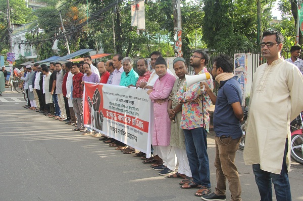 মানববন্ধনে বক্তব্য রাখেন ও উপস্থিত ছিলেন, সাম্যবাদী দলের সিলেট জেলা শাখার সভাপতি ধীরেন সিংহ, ডা. মোস্তফা শাহ জামান চৌধুরী বাহার, উদীচী সভাপতি এনায়েত হোসেন মানিক, ওর্য়াকাস পার্টির সিলেট শাখার সাধারণ সম্পাদক সিকান্দর আলী, বাসদ মার্কসবাদি সিলেট শাখার আহবায়ক উজ্জ্বল রায়, সম্মিলিত নাট্য পরিষদ সিলেটের সভাপতি মিশফাক আহমেদ মিশু, চারুশিল্পী সমন্বয় পরিষদের সভাপতি সামছুল বাসিত শেরো, ভূমিসন্তানের সমন্বয়ক আশরাফুল কবির, নাগরিক মৈত্রীর সভাপতি অ্যাডভোকেট সমর বিজয় শী, ফটো জার্নালিস্ট এসোসিয়েশনের সভাপতি মামুন হাসান, বাঁচাও হাওর আন্দোলনের আহবায়ক সাজিদুর রহমান সোহেল, ধ্রুবতারা সাহিত্য পরিষদের সভাপতি লায়েক আহমেদ সুমন, দ্যা আর্থ অব অটোগ্রাফের সভাপতি আব্দুল কাদির জীবন, মাসিক মৌমাছির সম্পাদক কে এম জুবায়েল হক, স্থপতি রাজন দাশ, প্রণবকান্তি দেব, ক্ষ্যাপা তারুণ্যের মহসিন হোসেন, অ্যাডভোকেট রনেন সরকার রনি, ব্রতচারী আন্দোলনের বিমান তালুকদার, নগরনাটের অরুপ বাউল, উজ্জ্বল চক্রবর্তী, ধ্রুব গৌতম, রাজিব রাসেল প্রমুখ।