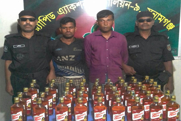 সুনামগঞ্জের তাহিরপুর থানা এলাকা থেকে বিদেশী মদসহ ২ জন মাদক গ্রেপ্তার করেছে ত র্যাপিড এ্যাকশন ব্যাটালিয়ন-৯।