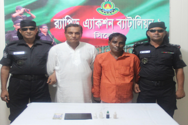 সিলেটের গোলাপগঞ্জ থেকে জাল নোট তৈরির ক্যামিকেলসহ প্রতারক চক্রের ২ জন সদস্যকে গ্রেপ্তার করেছে র্যাপিড এ্যাকশন ব্যাটালিয়ন-৯।