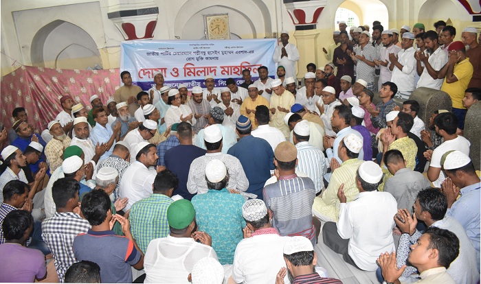 জাতীয় পার্টির চেয়ারম্যান, সাবেক রাষ্ট্রপতি হুসেইন মুহম্মদ এরশাদের রোগমুক্তি কামনায় দুআ ও মিলাদ মাহফিল অনুষ্ঠিত হয়েছে। শুক্রবার বাদ আসর জেলা জাপার উদ্যোগে হযরত শাহজালাল (রহ.) এর মসজিদে দুআ ও মিলাদ শেষে শিরনি বিরতণ করা হয়।