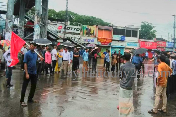 রোববার সকালে সিলেট কোর্ট পয়েন্ট থেকে এক বিক্ষোভ মিছিল বের করা হয়।