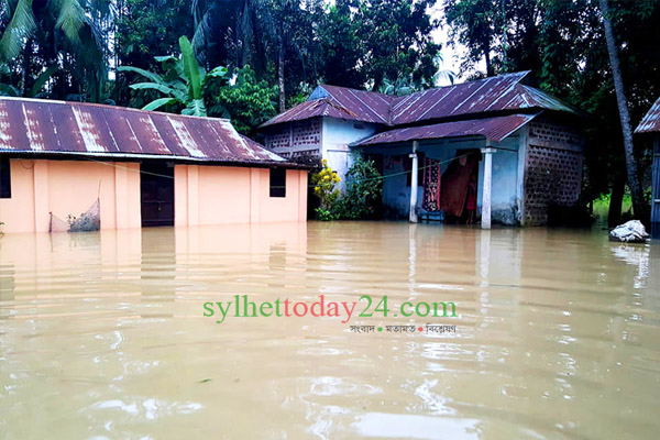 মৌলভীবাজারের মনু নদের চাঁদনীঘাট এলাকায় ৮৫, ধলাই নদীর পানি ২৪ এবং কুশিয়ারা নদীর পানি বিপদসীমার ৫৩ সেন্টিমিটার ওপর দিয়ে প্রবাহিত হচ্ছে। এসব নদ-নদীর প্রতিরক্ষা বাঁধ ভেঙে এবং পানি উপচে বাঁধের ভেতরে প্রবেশ করায় সদর উপজেলাসহ, রাজনগর, শ্রীমঙ্গল ও কমলগঞ্জের কয়েকটি গ্রাম তলিয়ে গেছে। পানিবন্দি হয়ে পড়েছে প্রায় ৫০ হাজার মানুষ। তলিয়ে গেছে বাড়িঘর, রাস্তাঘাট ও ফসলি জমি। পানি ডুকেছে ২৫টি প্রাইমারী ও ১৩টি মাধ্যমিক বিদ্যালয়ে।