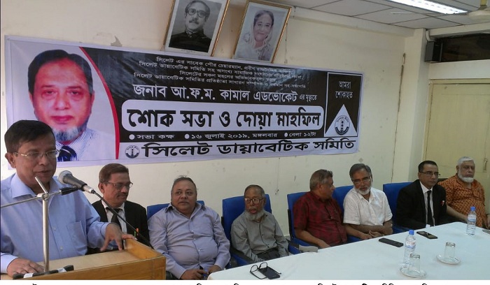 সিলেট ডায়াবেটিক সমিতি আয়োজিত সিলেট পৌরসভার সাবেক পৌর চেয়ারম্যান ও সিলেট ডায়াবেটিক সমিতির সহ-সভাপ তিএডভোকেট আ.ফ.ম. কামাল'র মৃত্যুতে শোক সভা ও দোয়া মাহফিলে সভাপতির বক্তব্যে এসব কথা বলেন সমিতির সভাপতি অধ্যাপক ডা. এম. এ. আহবাব।