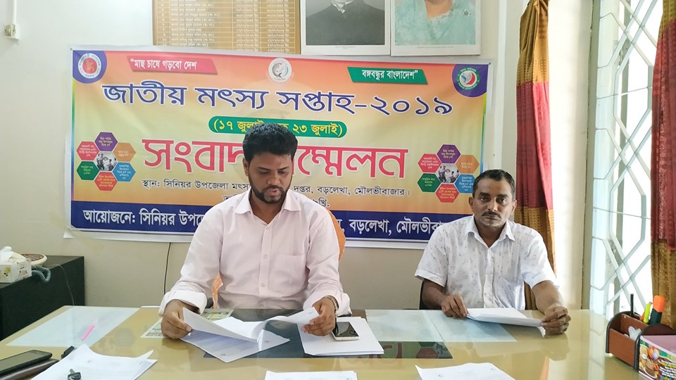 জাতীয় মৎস্য সপ্তাহ ’১৯ উদযাপন ও বাস্তবায়নের অংশ হিসেবে মৌলভীবাজারের বড়লেখায় সংবাদ সম্মেলন অনুষ্ঠিত হয়েছে। এ বছরের প্রতিপাদ্য বিষয় হচ্ছে- ‘‘মৎস্য সেক্টরের সমৃদ্ধি, সুনীল অর্থনীতির অগ্রগতি’’।