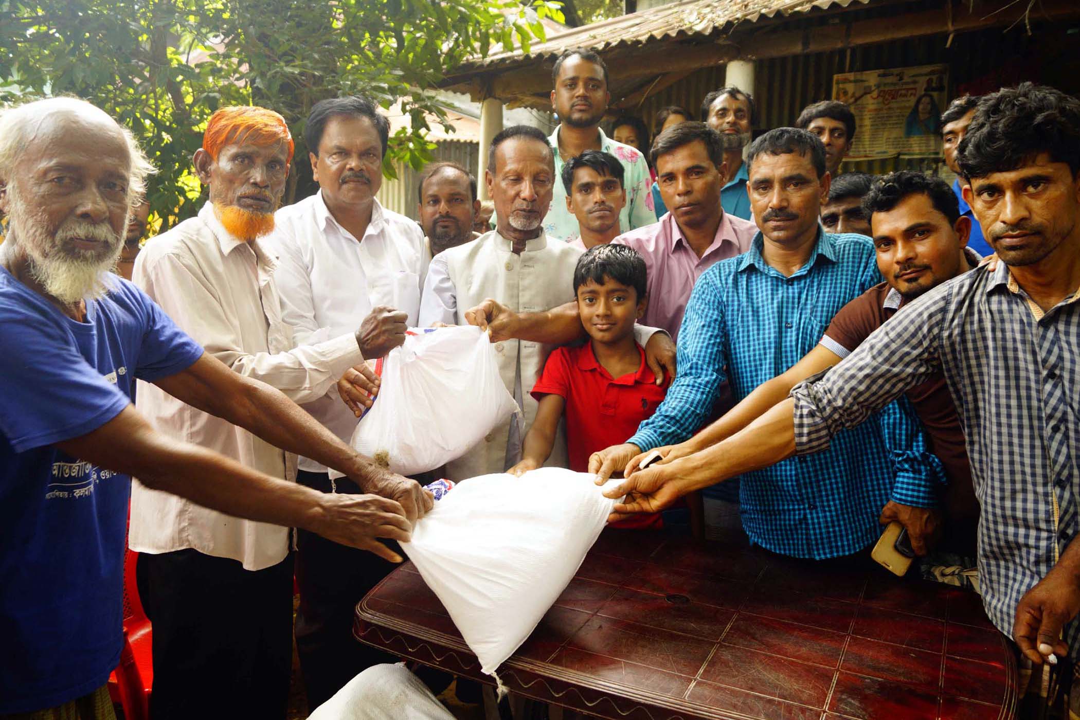 ত্রাণ সামগ্রীর মধ্যে রয়েছে ৫ কেজি চাল, ১লিটার সয়াবিন তৈল, ১ কেজি চিড়া, ১ কেজি আটা, ১ কেজি ডাল, ১কেজি গুড়, ১ কেজি লবণ, ১টি গোসলের সাবান, ১টি কাপড় ধোয়ার সাবান, ৫ প্যাকেট খাবার স্যালাইন, শিশুখাদ্য, ৫টি মোমবাতি, ২টি দিয়াশলাই, ১টি শাড়ি ও ১টি লুঙ্গি।