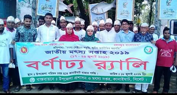 এ উপলক্ষে বৃহস্পতিবার সকাল ১০টায় এক বর্ণাঢ্য র্যালি কানাইঘাটের বিভিন্ন গুরুত্বপূর্ণ রাস্তা প্রদক্ষিণ করে পরবর্তীতে উপজেলা হল রুমে শেষ হয়। এরপর উপজেলা মৎস্য কর্মকর্তা ফারজানা আক্তারের সভাপতিত্বে মৎস্য সপ্তাহের আলোচনা সভায় প্রধান অতিথি হিসাবে উপস্থিত ছিলেন উপজেলা সহকারী কমিশনার (ভূমি) লুসিকান্ত হাজং।