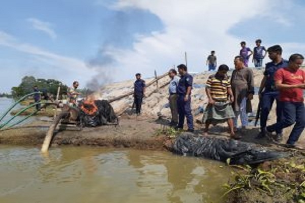 শনিবার এভাবে ড্রেজার মেশিন লাগিয়ে জয়নগর-মোহনপুর সড়কের পাশে অবৈধভাবে বালু ডাম্পিং করায় নির্বাহী ম্যাজিস্ট্রেট মো. আমিনুল এহসান ঘটনাস্থলে গিয়ে তিনটি ড্রেজার মেশিন জব্দ করে আগুনে পুড়িয়ে দেন। এ সময় ব্যবসায়ীরা পালিয়ে যায়।