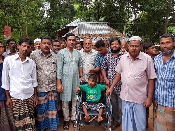 মাধবপুরের চৌমুহনী ইউনিয়ন পরিষদ চেয়ারম্যানের ব্যক্তিগত উদ্যোগে হুইল চেয়ার পেল বিষ্ণপুরের শারীরিক প্রতিবন্ধী কাজল মিয়া।
