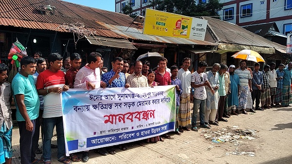 ঈদের আগে তাহিরপুর-সুনামগঞ্জ সড়কসহ বন্যায় ক্ষতিগ্রস্ত হাওর এলাকার সকল সড়ক মেরামত করে সড়ক যোগাযোগ স্বাভাবিক করার দাবি জানিয়েছে পরিবেশ ও হাওর উন্নয়ন সংস্থা। শুক্রবার বিকাল তিনটায় সুনামগঞ্জের তাহিরপুর বাজারে এক মানববন্ধনে তারা এসব দাবি জানায়। মা