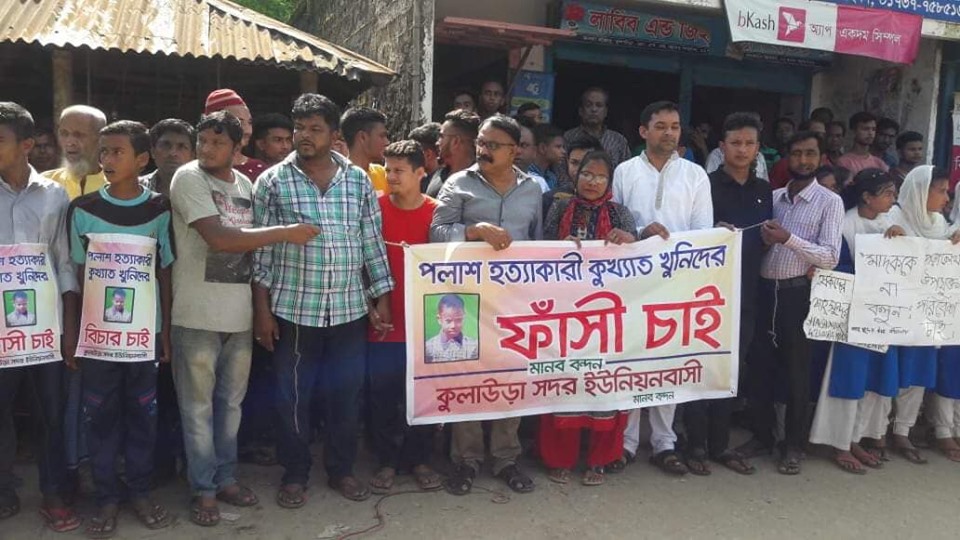 মানববন্ধন ও প্রতিবাদ সভায় বক্তারা বলেন, পলাশ হত্যাকাণ্ডের সাথে জড়িত রাহেল আহমদ, জাহেদ আলী ও তার পিতা মিরজান আলী পুলিশের হাতে আটক হলেও এ ধরণের নির্মম হত্যাকাণ্ডের দায়ে তাদের ফাঁসির দাবি জানান। হত্যাকারী পরিবার এলাকায় খারাপ লোক হিসেবে চিহ্নিত। তাদের ফাঁসি না হওয়া পর্যন্ত এই আন্দোলন অব্যাহত থাকবে।