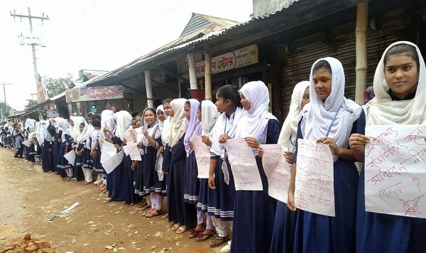 মানববন্ধনে বক্তারা সানশাইন স্কুলের ৯ম শ্রেণীর ছাত্রী লিজা আক্তারের উপর বখাটে শিবলুর হামলা ঘটনায় তীব্র নিন্দা জানান। একই সাথে বখাটে শিবলুর দৃষ্ঠান্তমূলক শাস্তি ও তার সহযোগীতের দ্রুত গ্রেপ্তারের দাবি জানান। অন্যথায় ছাত্রছাত্রীদের নিয়ে বৃহত্তর আন্দোলনের হুমকি দেন বক্তারা।