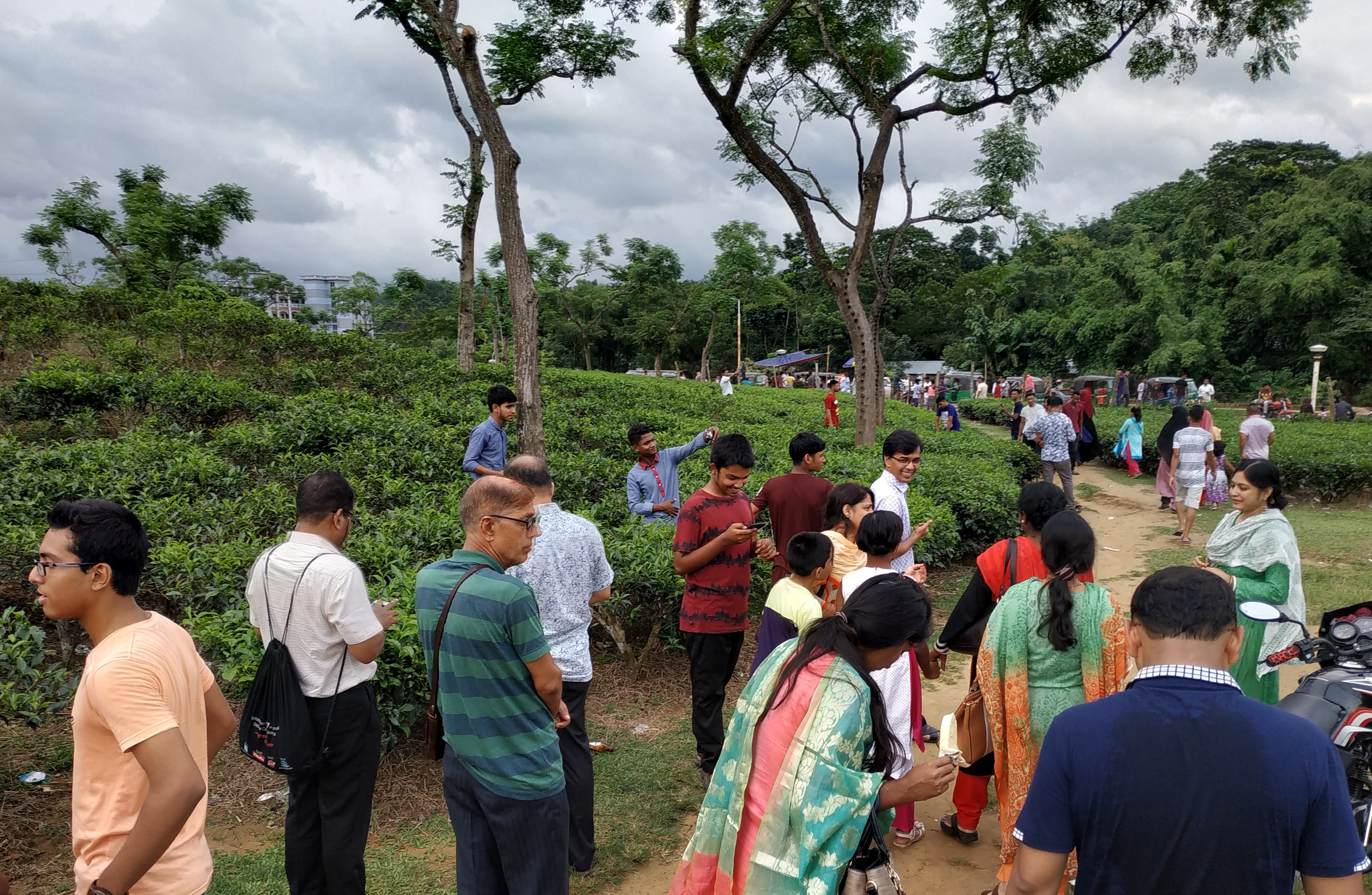 প্রতিবারের মতো এবারের ঈদুল আযহার ছুটিতেও সিলেটে এসে উচ্ছ্বাসে-আনন্দে তারা স্বজনদের সাথে উপভোগ করছেন ঈদের আনন্দঘন মুহূর্ত। আজ মঙ্গলবার সিলেটের মালনীছড়া, আহমদ টি, লাক্কাতুরা ন্যাশনাল টি ও তারাপুর চা বাগান ঘুরে দেখা গেছে, ঈদের ছুটির শেষ দিকে এসে পর্যটকরা যাওয়ার সময় চা বাগানগুলোর উঁচু-নিচু, আঁকা-বাঁকা পথে ঘুরে বেড়াচ্ছেন। পছন্দসই স্পটে ছবি তুলছেন আর আনন্দ-উল্লাস করছেন যে যার মতো। বাস, ট্রাক, মিনি বাসসহ ছোট যানবাহনে করে ভ্রমণ প্রেয়সী মানুষজন এখানে এসে ঈদের আনন্দকে ভাগাভাগি করতে হুমড়ি খেয়ে পড়েছেন। সবুজ সতেজতায় নিজেকে আবৃত্ত করতে তাড়া ছুটে আসেন প্রকৃতির দোরগোড়ায়।