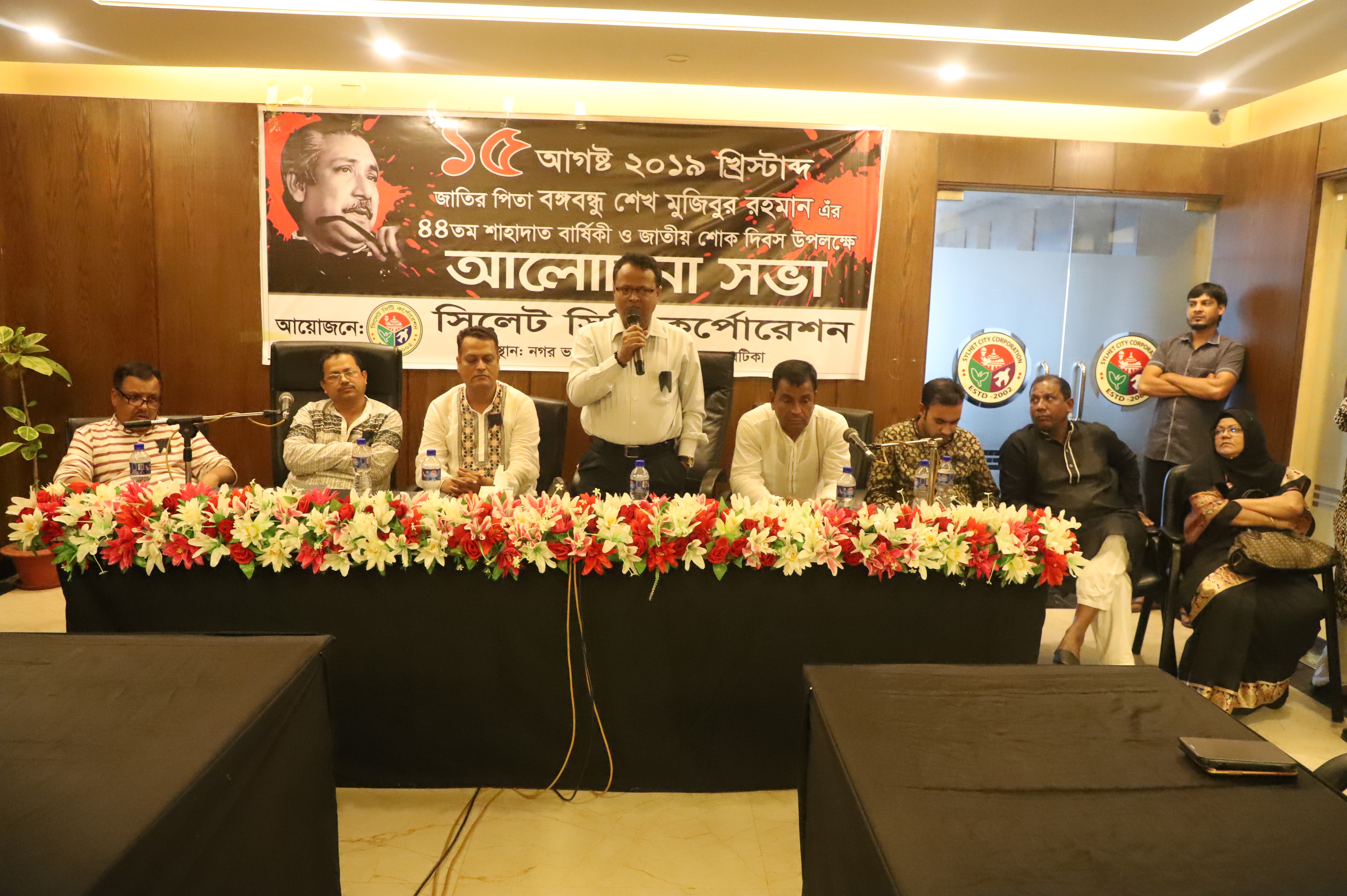 সিটি কাউন্সিলর ও প্যানেল মেয়র-১ মোহাম্মদ তৌফিক বক্স লিপনের সভাপতিত্বে ও চন্দন দাশের সঞ্চালনায় অলোচনা সভায় বিধায়ক রায় আরও বলেন, “১৯৯৬-এ দায়মুক্তি অধ্যাদেশ বাতিলের আগ পর্যন্ত ২১ বছর স্বঘোষিত খুনিরা বিচারের আওতা থেকে মুক্ত থাকার সুযোগ পেয়েছিল। অনেক দেরিতে ও পাহাড়সম বাধাবিপত্তি পেরিয়ে বঙ্গবন্ধু হত্যাকাণ্ডের বিচার সম্পন্ন হয়েছে। খুনিদের মধ্যে পাঁচজনের ফাঁসির দণ্ড কার্যকর হয়েছে, কিন্তু দণ্ডিত বাকি ছয় খুনি এখনো ধরাছোঁয়ার বাইরে। এই খুনিদের দেশে ফিরিয়ে রায় কার্যকর করতে না পারাটা জাতির জন্য হতাশার।”