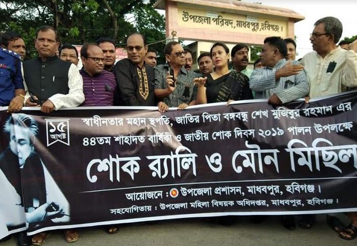 বৃহস্পতিবার (১৫ আগস্ট) সকালে মাধবপুর উপজেলা প্রশাসনের উদ্যোগে শোক র্যালি ও মৌন মিছিলের আয়োজন করা হয় এতে সকল শ্রেণী পেশার লোক অংশ গ্রহণ করেন।