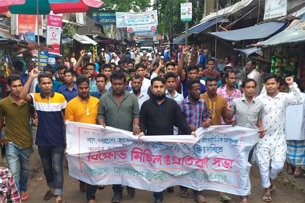 শুক্রবার (১৬ আগস্ট) বিকেল ৫টায় উপজেলা শহীদ মিনার চত্বর থেকে বিক্ষোভ মিছিল বের হয়ে প্রধান প্রধান সড়ক প্রদক্ষিণ করে মিছিলটি প্রেসক্লাব সম্মুখে এসে প্রতিবাদ সমাবেশে মিলিত হয়।