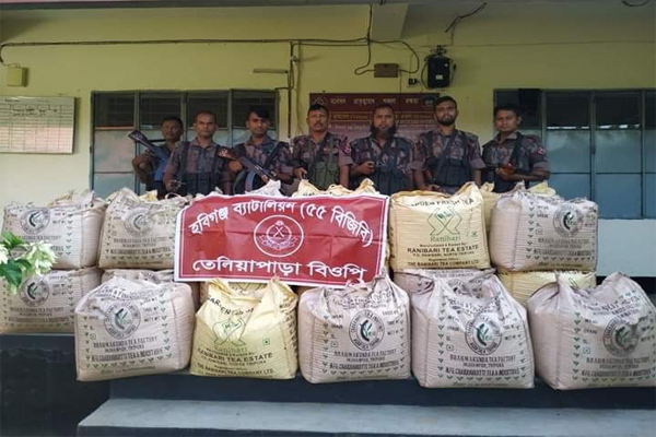 হবিগঞ্জের মাধবপুর উপজেলার ঢাকা-সিলেট পুরাতন মহাসড়কের তেলিয়াপাড়া থেকে ১০৫৪ কেজি ভারতীয় চা-পাতা জব্দ করেছে বর্ডার গার্ড বাংলাদেশ (বিজিবি)।