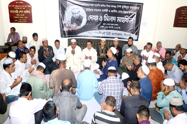 জাতির জনক বঙ্গবন্ধু শেখ মুজিবুর রহমানের ৪৪ তম শাহাদাৎ বার্ষিকী ও জাতীয় শোক দিবস উপলক্ষে সিলেট সিটি করপোরেশনের উদ্যোগে মিলাদ ও দোয়া মাহফিল অনুষ্ঠিত হয়েছে।