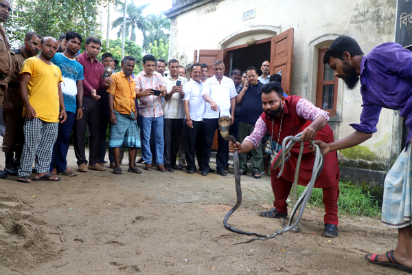সাপুড়ে মো. বোরহান উদ্দিন জালালী বলেন, খবর পেয়ে ঘটনাস্থলে এসে কড়ি চালান দিয়ে বুঝতে পারি অনেকগুলো বিষধর সাপ আছে এখানে। পরে ২টি বিষধর গোখরা সাপসহ ৬টি সাপ উদ্ধার করা সম্ভব হয়।