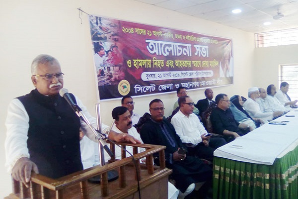 ২১ আগস্ট গ্রেনেড হামলার প্রতিবাদে বুধবার (২১ আগস্ট) সকাল সাড়ে ১১টায় সিলেট জেলা পরিষদ মিলনায়তনে সিলেট জেলা ও মহানগর আওয়ামী লীগের উদ্যোগে আলোচনা সভায় বক্তারা এ কথা বলেন।