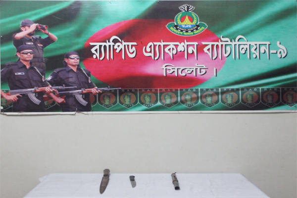 শনিবার (৩১ আগস্ট) রাতে সাড়ে ১২টায় গোপন সংবাদের ভিত্তিতে র্যাপিড এ্যাকশন ব্যাটালিয়ন-৯, সদর কোম্পানী, সিলেট ক্যাম্প এর একটি আভিযানিক দল এসব অস্ত্র উদ্ধার করে রোববার (২৮ আগস্ট) গণমাধ্যমে প্রেরিত এক সংবাদ বিজ্ঞপ্তিতে জানানো হয়।