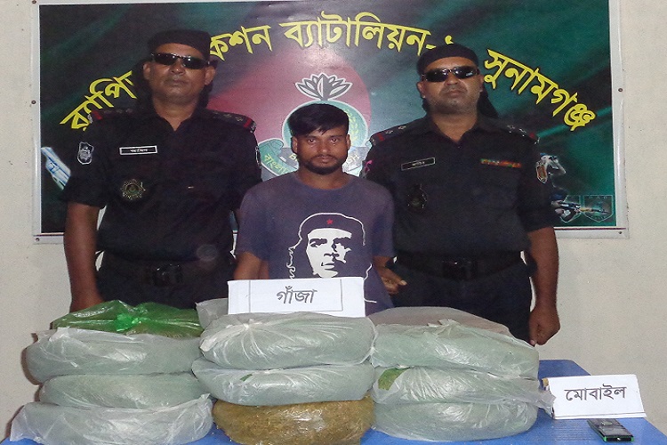 র্যাব জানায়, শনিবার দিবাগত রাত সাড়ে ৩টার সময় গোপন সংবাদের ভিত্তিতে র্যাপিড এ্যাকশন ব্যাটালিয়ন-৯, সিপিসি-৩, সুনামগঞ্জ ক্যাম্পের একটি আভিযানিক দল লে. কমান্ডার ফয়সল আহমদের নেতৃত্বে সুনামগঞ্জ জেলার সদর থানাধীন পৌরসভা এলাকায় মাদক উদ্ধার ও আসামি গ্রেপ্তার অভিযান পরিচালনা করে। অভিযানে সুনামগঞ্জ জেলার সদর থানাধীন মল্লিকপুর গ্রামের গুদারাঘাট (খেয়াঘাট) এর দক্ষিণ পাশে পাকা রাস্তার উপর থেকে ১৬ কেজি ২০০ গ্রাম গাঁজাসহ ১ জন মাদক ব্যবসায়ীকে গ্রেপ্তার করা হয়।