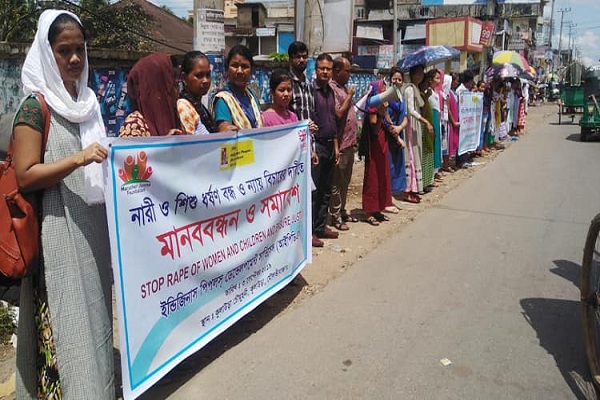 নারী ও শিশু ধর্ষণ বন্ধ ও ন্যায় বিচারের দাবিতে কুলাউড়ায় মানববন্ধন অনুষ্ঠিত হয়েছে।