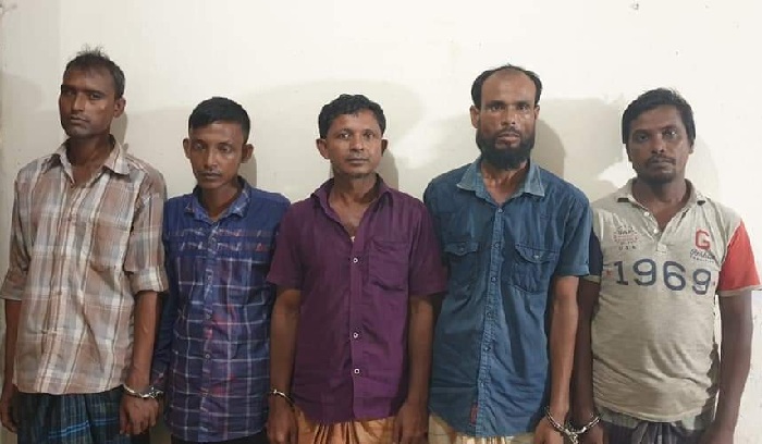 আটককৃতরা হলেন- পৌর শহরের আনোয়ারপুর নয়াহাটি এলাকার হারুন মিয়া'র পুত্র জাহাঙ্গির মিয়া, নতুন বাগবাড়ি পিছের হাটি এলাকার আব্দুল নূর'র পুত্র আমির হোসেন, একই এলাকার আজাব উল্লাহ'র পুত্র আব্দুল খালিক, মজলিশপুর এলাকার কৃষ্ণ চন্দ্র দেবনাথ'র পুত্র রঞ্জিত দেবনাথ, একই এলাকার আলীর পুত্র মকবুল হোসেন।