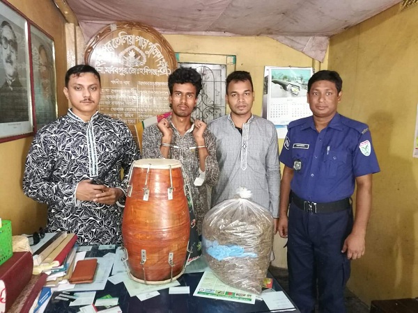 শুক্রবার সকালে তেলিয়াপাড়া ফাঁড়ির ইনচার্জ রকিবুল হাসান তেলিয়াপাড়া স্টেশন বাজার এলাকায় ইউনুসকে আটক করে তার ঢোলের ভিতরে লুকিয়ে রাখা তিন কেজি গাঁজা জব্দ করে।