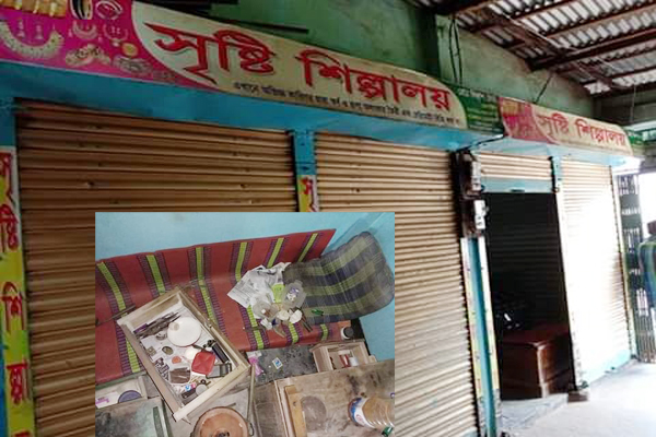 স্থানীয় সূত্রে জানা যায়, পৌর শহরের মধ্য বাজারে ক্ষীরোদ পাল ম্যানশনে অবস্থিত সৃষ্টি শিল্পালয় নামে স্বর্ণালংকারের দোকান শনিবার ভোররাতে শাটারের তালা ভেঙে ভিতরে প্রবেশ করে একদল চোর। দোকানে মালিক শনিবার সকাল ১০ টায় দোকানে এসে দেখতে পান শাটারের তালা ভাঙা। পরে দোকানে প্রবেশ করে দেখেন সমস্ত মালামাল তছনছ করে ক্যাশের তালা ভেঙে রুপা ও স্বর্ণালংকারসহ অনুমানিক ২ লাখ টাকার মালামাল নিয়ে গেছে চোরেরা।