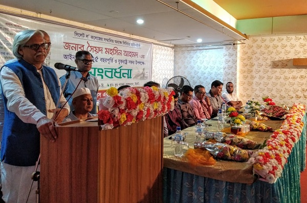 সিলেট জেলা আইনজীবী সমিতির সাবেক যুগ্ম সম্পাদক আখমল খানের সভাপতিত্বে সিলেট ল' কলেজের অধ্যক্ষ ও সিলেট জেলা বারের আইনজীবী এডভোকেট সৈয়দ মহসিন আহমদের আইন পেশায় ২৫ বছরপূর্তি ও যুক্তরাষ্ট্র সফর উপলক্ষে এই সংবর্ধনার আয়োজন করা হয়।