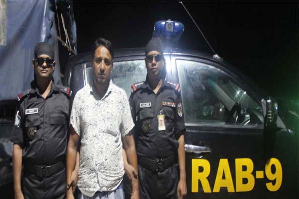 শনিবার (৭ সেপ্টেম্বর) রাতে গোপন সংবাদের ভিত্তিতে র্যাপিড এ্যাকশন ব্যাটালিয়ন-৯, সিপিসি-২, সিপিসি-১ (সিলেট ক্যাম্প) এর একটি আভিযানিক দল তাকে গ্রেপ্তার করে রোববার (৮ সেপ্টেম্বর) গণমাধ্যমে প্রেরিত এক সংবাদ বিজ্ঞপ্তিতে জানানো হয়।
