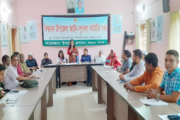 উপজেলা নির্বাহী কর্মকর্তা (ইউএনও) বর্ণালী পালের সভাপতিত্বে সভায় বিশ^নাথের আইনশৃঙ্খলার অবনতির বিষয়ে আলোকপাত করা হয়।