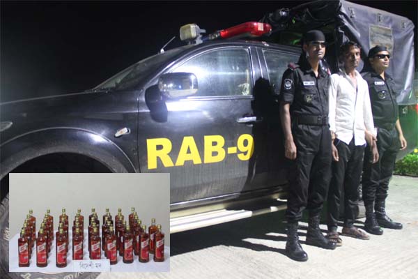 সংবাদ বিজ্ঞপ্তিতে র্যাব জানায়, অভিযানে সিলেট জেলার বিয়ানীবাজার থানাধীন নয়াদুবাগ সাকিনস্থ আলতাফ ব্রিকস ফিল্ড পাশে পাকা রাস্তার উপর থেকে ৪২ বোতল বিদেশী মদসহ ১ জন পেশাদার মাদক ব্যবসায়ীকে গ্রেপ্তার করেছে র্যাব-৯।