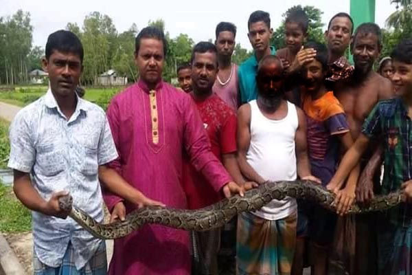 মৌলভীবাজারের শ্রীমঙ্গলের ইসবপুর গ্রামের তামিম রিসোর্টের পাশের ধানক্ষেত থেকে প্রায় পাঁচ ফুট লম্বা একটি অজগর সাপ উদ্ধার করা হয়েছে।