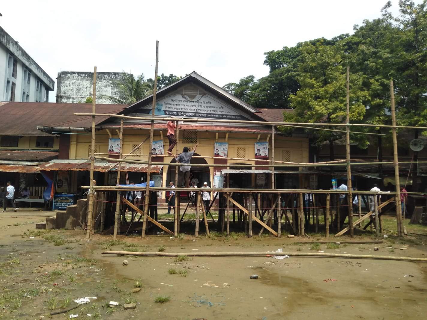 এর আগে সকাল থেকে পুনরায় মঞ্চ তৈরির কাজ শুরু হয়।