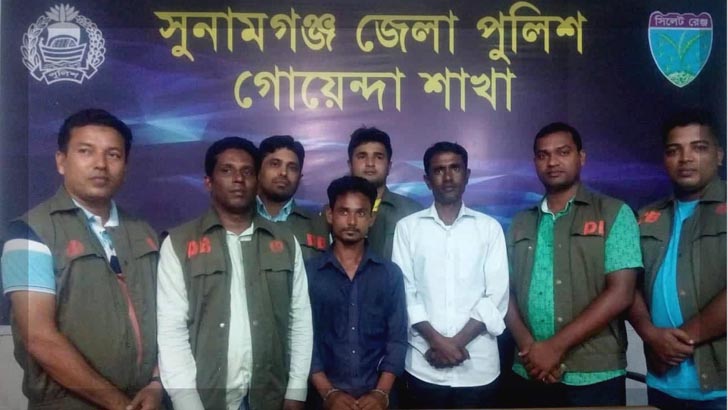 বৃহস্পতিবার রাত ১০টায় সুনামগঞ্জ জেলা গোয়েন্দা (ডিবি) পুলিশের মিডিয়া সেলের সমন্বয়কারী এসআই আমিনুল ইসলাম জানান, ডিবির ওসি মো. আতিকুর রহমানের নেতৃত্বে ডিবির একটি টিম বৃহস্পতিবার দিনভর নজরদারীর পর তাহিরপুরের বালিজুড়ী ইউনিয়নের পাথারি গ্রাম সংলগ্ন রক্তি নদীতে বালু-পাথরবাহী নৌকা আটকিয়ে চাঁদা আদায়কালে জিয়া উদ্দিন ও তার সহযোগী আবু বক্করকে আটক করেন।