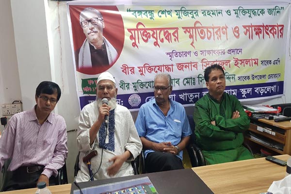 সকাল থেকেই বিক্ষিপ্ত বৃষ্টি ছিল। একটা সময় বৃষ্টি থেমে গেলে স্কুল প্রাঙ্গণে ঝকঝকে সুন্দর আবহাওয়া তৈরি হয়। এরকম একটি সুন্দর পরিবেশে ‘বঙ্গবন্ধু শেখ মুজিবুর রহমান ও মুক্তিযুদ্ধকে জানি’ শীর্ষক অনুষ্ঠানে মুক্তিযুদ্ধের স্মৃতিচারণ করলেন মুক্তিযোদ্ধা ও সাবেক সাংসদ সিরাজুল ইসলাম।