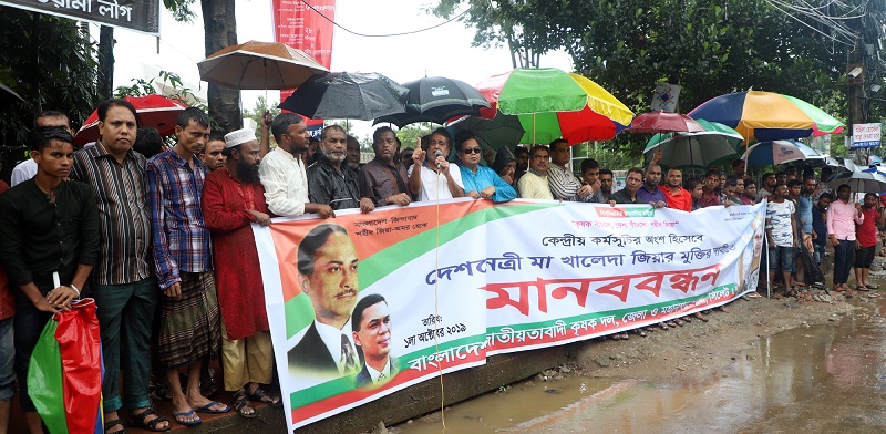 মহানগর কৃষক দলের আহবায়ক আব্দুল মান্নান পুতুলের সভাপতিত্ত্বে ও জেলা কৃষক দলের সাধারণ সম্পাদক হাজী তাজরুল ইসলাম তাজুলের পরিচালনায় অনুষ্ঠিত মানবন্ধনে মুক্তিযোদ্ধা আব্দুর রাজ্জাক বলেন, বর্তমান সরকার দেশের সর্বোচ্চ আদালতকে ব্যবহার করে বিএনপি চেয়ারপারসন চারবারের সাবেক প্রধানমন্ত্রী দেশনেত্রী বেগম খালেদা জিয়াকে মিথ্যা বানোয়াট ও সাজানো মামলায় সাজা দিয়ে কারাবন্দি করে রেখেছে। তিনি বলেন, আওয়ামী লীগ সরকার চেয়েছিল দেশনেত্রী বেগম খালেদা জিয়াকে কারাগারে বন্দি করে রেখে বিএনপিকে নিঃশেষ করে দিতে। সরকারের সেই হীন চেষ্টা ব্যর্থ হয়েছে।