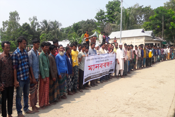 রোববার (৬ অক্টোবর) দুপুরে জামালগঞ্জ উপজেলার সুরমা নদীর পূর্ব পাড়ে গজারিয়া বাজারে ঘণ্টাব্যাপি এ মানববন্ধন কর্মসূচি পালিত হয়। মানববন্ধনে বালু-পাথর, কয়লা, নৌ-শ্রমিকদের পাশাপাশি বাজারের ব্যবসায়ী ও স্থানীয় জনপ্রতিনিধিরা অংশ নেন।