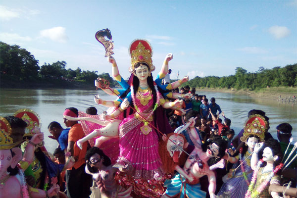 মর্তলোক থেকে কৈলাসে দেবীকে বিদায় জানাতে নেচে গেয়ে মাতোয়ারা হন ভক্তরা। সেজেছিলেন উৎসবের বর্ণিল রঙে। কুশিয়ারা নদীর উভয় পারের প্রতিমা বিসর্জনে এক অভূতপূর্ব দৃশ্যের অবতারণা হয়। দীর্ঘদিন ধরে এমন ভাবেই বাঙ্গালী হিন্দুদের এ উৎসব ভারত ও বাংলাদেশের কুশিয়ারা নদীর দুই তীর চলে আসছে।