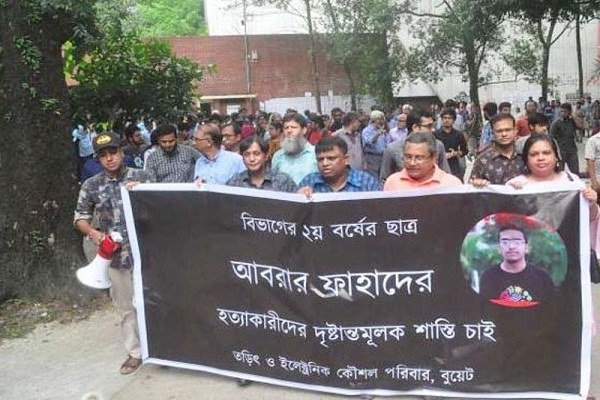 বাংলাদেশ প্রকৌশল বিশ্ববিদ্যালয়ের (বুয়েট) শেরে বাংলা হলে আবরার ফাহাদকে হত্যার প্রতিবাদে ক্যাম্পাসে তৃতীয় দিনের মতো বিক্ষোভ করছেন শিক্ষার্থীরা।