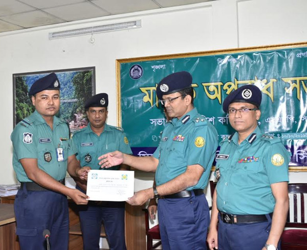 সেপ্টেম্বর মাসে অধিক সংখ্যক পরোয়ানা তামিল, অধিক পরিমানে মাদক দ্রব্য উদ্ধার, সর্বোচ্চ প্রসিকিউশন দাখিল ও জরিমানা আদায়, বিচারের জন্য অধিক সংখ্যক মামলা প্রস্তুত এবং মামলা নিষ্পত্তি ও এফএম প্রেরণ করার জন্য পুরস্কৃত হলেন সিলেট মেট্রোপলিটন পুলিশ (এসএমপি)'র আট পুলিশ সদস্য।
