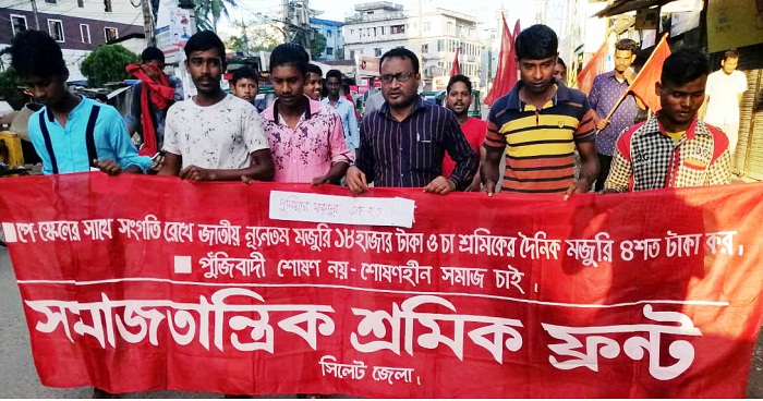 পে-স্কেলের সাথে সঙ্গতি রেখে জাতীয় ন্যূনতম মজুরি ১৮হাজার টাকা ও চা শ্রমিকের দৈনিক মজুরি ৪শত টাকা করা সহ ৭দফা দাবিতে সমাজতান্ত্রিক শ্রমিক ফ্রন্ট সিলেট জেলা শাখার উদ্যোগে শুক্রবার (১১ অক্টোবর) বিকাল ৫টায় বিক্ষোভ মিছিল ও সমাবেশ অনুষ্ঠিত হয়।