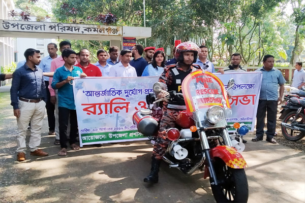 রোববার (১৩ অক্টোবর) সকাল ১১টায় এ উপলক্ষে উপজেলা প্রশাসনের আয়োজনে উপজেলা পরিষদ চত্বর থেকে একটি র্যালি বের হয়। র্যালিটি কমলগঞ্জ উপজেলা চত্বরে প্রদক্ষিণ করে উপজেলা পরিষদ গেইটের সামনে অগ্নিকাণ্ডের সময় প্রাথমিক করণীয় বিষয়ে ফায়ার সার্ভিস সিভিল ডিফেন্সের কর্মীরা মহড়া করে।
