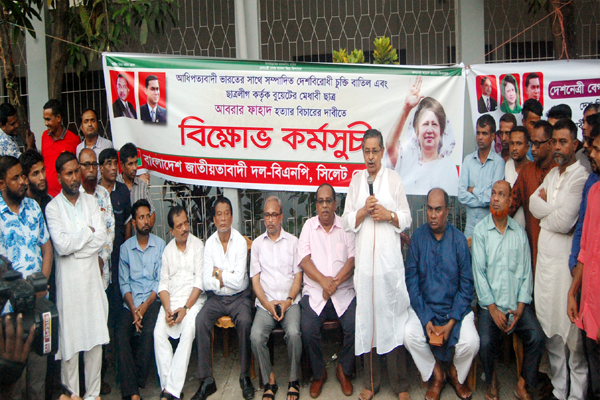 সিলেট জেলা বিএনপি নেতৃবৃন্দ বলেছেন, মুখে মুক্তিযুদ্ধের স্বপক্ষের শক্তি বলে ক্ষমতাসীন আওয়ামী সরকার জাতির সাথে প্রতারণা করছে। ক্ষমতা কুক্ষিগত রাখতে একদিকে তারা দেশের অভ্যন্তরে গণতন্ত্রকে গলাটিপে হত্যা করছে অপরদিকে দেশের স্বার্থ জলাঞ্জলি দিয়ে একের পর এক দেশবিরোধী চুক্তি করে যাচ্ছে। ভারতের সাথে দেশের স্বার্থ চুক্তির বিরোধিতা করে ফেইসবুকে স্ট্যাটাস দেয়ায় সরকার দলীয় সন্ত্রাসীরা বুয়েটের মেধাবী ছাত্র আবরার ফাহাদকে নির্মমভাবে পিটিয়ে হত্যা করেছে। সরকারের আস্কারা পেয়ে ছাত্রলীগ-যুবলীগ দেশকে সন্ত্রাস, মদ ও জুয়ার নিরাপদ অভয়ারণ্যে পরিণত করেছে।